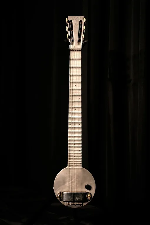 - Это была гавайская слайд-гитара (lap steel guitar) с круглым металлическим корпусом, получившую прозвище «Frying Pan» («Сковорода»).