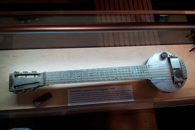- Это была гавайская слайд-гитара (lap steel guitar) с круглым металлическим корпусом, получившую прозвище «Frying Pan» («Сковорода»).