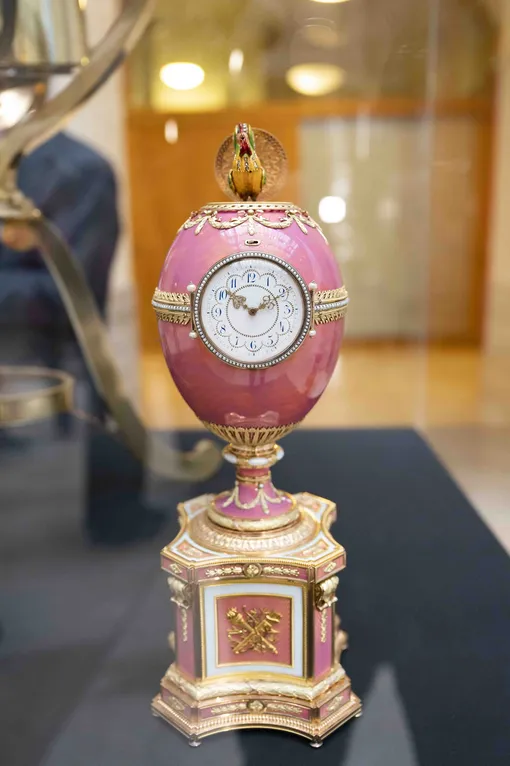 В 2025 году в центре внимания программы «Связь времен – связь технологий» реставрационный проект — часы-яйцо Ротшильда. Это уникальное произведение ювелирного искусства, создано ювелиром фирмы Фаберже Михаилом Евлампиевичем Перхиным в 1902 году по заказу баронессы Беатрисы Эфрусси де Ротшильд (1864‒1934). С момента поступления предмета в Эрмитаж, он находился на постоянной экспозиции в залах памяти Карла Фаберже в здании Главного Штаба или принимал участие во временных выставках. Изделие выполнено из драгоценных материалов, декорировано нежного оттенка прозрачной розовой эмалью по гильошированному (гильош (от фр. guilloché) ‒ узор из волнистых линий) фону и оснащено сложным часовым механизмом работы Николая Васильевича Роде. Циферблат часов с голубыми арабскими цифрами украшен белой эмалью, его закрывает круглое стекло, по диаметру которого выложены мелкие зерна жемчуга. Ножка, служащая подставкой для яйца, и восьмиугольное основание покрыты розовой и жемчужно-белой эмалью. Поверхность часов украшают золотые чеканные накладки в виде цветочных гирлянд, лент, военных трофеев и музыкальных предметов.