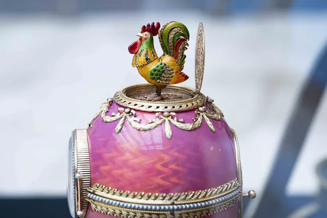 Механизм часов можно отнести к сложнейшим представителям музыкально – анимационных устройств. Кроме собственно часовой части, он включает в себя уникальное устройство, обеспечивающее вертикальное перемещение фигурки петушка, ее анимацию (движение крыльями и головкой) и пение (миниатюрный органчик в нижней части экспоната). Большой износ и поздние переделки механизма говорят о его былой популярности. В ближайшее время шедевр фирмы Фаберже вернется на свое место на экспозицию в залы памяти Карла Фаберже в Главном Штабе.