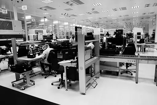 Камеры и объективы собирают не на конвейере, а в чистых цехах, где мастер руками подгоняет узлы, шлифует геликоиды, проверяет каждый механизм.