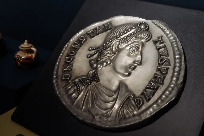 На золотом статере IV в. до н.э. из Боспорского царства изображен сатир в трехчетвертном повороте. Обычно этих лесных божеств и символов плодородия изображают в профиль, иногда с венком, иногда без. Существует более десятка таких монет. Однако именно этот экземпляр выделяется среди них: редким исполнением образа сатира в 3/4. Он считается вершиной мастерства резчиков Боспорского царства. Статер представлен на выставку партнером проекта — Государственным Эрмитажем. Это самая редкая и знаменитая античная монета.