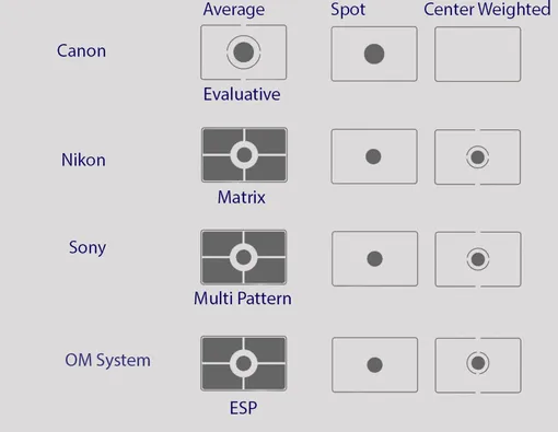 Стандартный режим замера экспозиции усредняет освещенность сцены — понятная функция. Но названий у нее десятки: Matrix, Multi, Evaluative, ESP, Multi-Field. Все они делают примерно одно и то же.