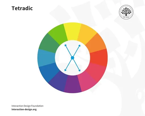 - триадные — три цвета на равном расстоянии, тетрадные (double-complementary) — две комплементарные пары сразу.