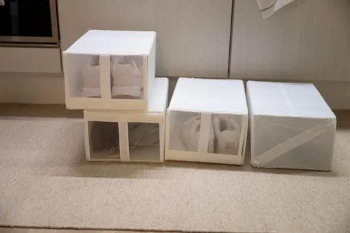 Зимой все летние вещи нужно убирать подальше из виду, так же как и летом — зимние. Если есть возможность, их следует вообще вынуть из шкафа, сложить в пластиковый короб и спрятать его, например, на антресолях, под кроватью или на шкафу. Еще вариант — сложить все в вакуумные пакеты. Так неактуальные вещи не будут занимать лишний воздух (и в прямом, и в переносном смысле) в шкафу.