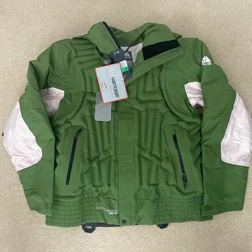 На сей раз инженеры бренда добрались до святая святых — возможности регулировать температуру тела без лишних слоев одежды. Их новое детище — куртка Therma-FIT Air Milano — это, по сути, термос с пультом дистанционного управления, только в виде одежды. Зачем надевать под куртку три свитера, если можно просто ее... надуть?