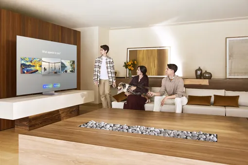 Вот именно с настройкой ИИ и могут помочь. Причем современные ТВ прекрасно обходятся без выносных колонок: например, в корпусе Samsung Neo QLED 8K QN990F нашлось место аж для 8 динамиков, которые отлично воспроизводят объемное звучание. Помимо динамиков в телевизоре есть встроенный микрофон. После каждого включения Samsung Neo QLED 8K анализирует общую звуковую сцену. Он учитывает не только конфигурацию помещения и собственное расположение в комнате, но и наличие предметов, мешающих распространению звука. То есть если вы вдруг повесили на стену ковер и закрыли плотными шторами свои панорамные окна, ТВ заметит это и увеличит громкость звука в среднем и высоком диапазонах.
