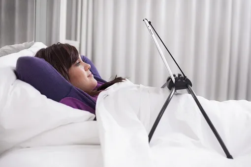 Для любителей полежать с планшетом после тяжелого дня — настоящее спасение. Выглядит как механический паук, атакующий вашу грудь, но работает безупречно! Ножки регулируются, планшет фиксируется под разными углами. Немного громоздкая, зато позволяет забыть о усталых руках. Хранить ее можно, аккуратно свернув «лапки» под диваном.