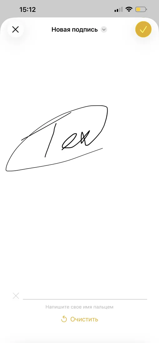 Возьмите ручку, бумагу и распишитесь на бумаге. Далее — сфотографируйте ее или отсканируйте. В iPhone это можно сделать через заметки: нажмите на скрепку и выберите «Отсканировать документ».