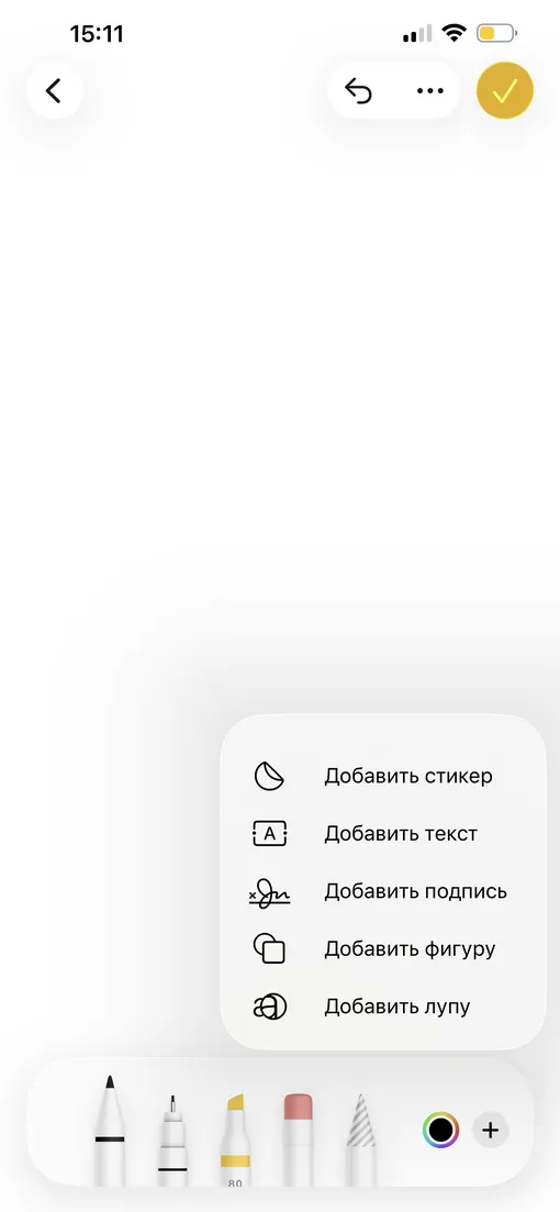 Тут даже не нужны вспомогательные инструменты. Откройте те же заметки на iPhone, нажмите на карандаш. Далее нужно кликнуть на плюс и кнопку «Добавить подпись».