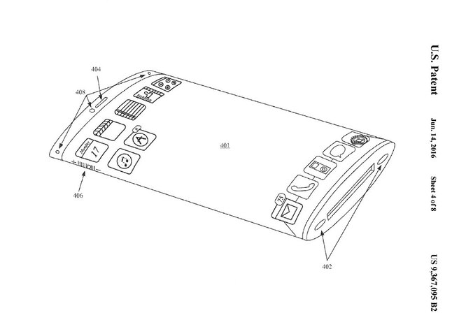 Согласно патентной заявке, сенсорный дисплей буквально опоясывает смартфон, занимая не только лицевую, но и заднюю панели, а также боковые секции. Таким образом Apple надеется расширить функциональные возможности на все поверхности устройства и лишить его физических кнопок. Предполагается, что расширение экрана в ширину позволит также размещать на нем не четыре, а пять иконок в ряд. Превратится ли патент в будущий iPhone, покажет время.
