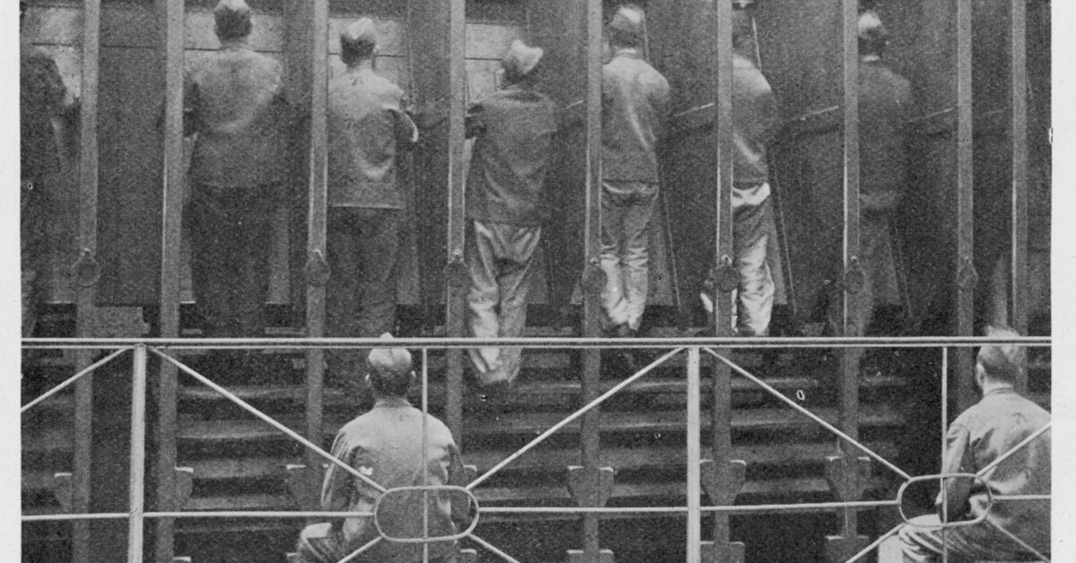 Выглядело все так: десятки заключенных цеплялись за поручни и одновременно поднимались по лестнице, которая заставляла колесо вращаться. Как правило, за один день каторжники преодолевали расстояние в более 4000 метров, сжигая более 2000 калорий.