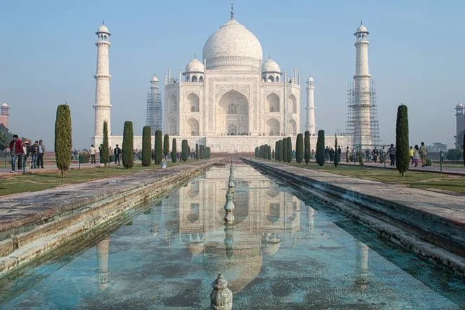По задумке императора, Тадж-Махал был спроектирован так, чтобы выглядеть как рай на земле. Он включает в себя сад, разделенный реками, которые впадают в центральный бассейн.