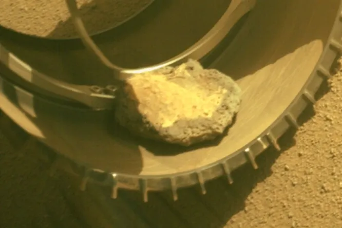 Кто-то сказал, что Perseverance вставил палки в колеса, потому что у марсохода нет карманов. НАСА заявило, что камень не причинил никакого вреда, хоть и издавал раздражающий лязгающий шум.