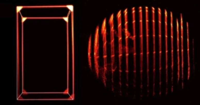Физики применили хитрый прием. Они использовали куб со стороной около метра и обстреливали его ультракороткими лазерными импульсами длительностью 300 пикосекунд. Специальная камера фиксировала отраженный свет, создавая тонкие «срезы». После каждого среза изображение куба «передвигали» на 4,8 сантиметра — ровно на то расстояние, которое он преодолел бы за время между импульсами при движении со скоростью 80% от скорости света. Затем все срезы объединили в единый снимок.