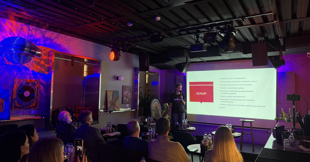 Особый интерес вызвал блок по личной безопасности: мастер спорта по каратэ Константин Терехин, обладатель двух черных поясов, поделился эффективными приемами самозащиты в опасных дорожных (и не только!) ситуациях. Завершающим спикером стала Елена Астер — генеральный директор Smart Event, давшая ценные рекомендации по сохранению самообладания за рулем.