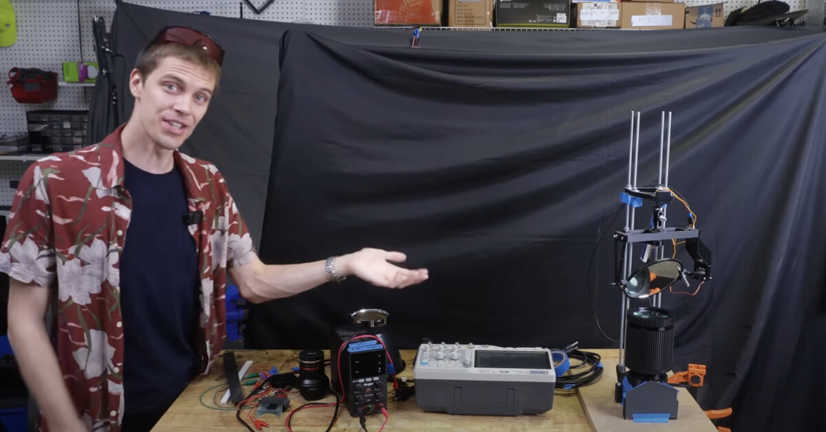 Создатель YouTube-канала AlphaPhoenix и доктор наук по материаловедению Брайан Хайдет из США уже год назад собрал камеру на один миллиард кадров в секунду. Теперь он усовершенствовал систему — улучшил почти все компоненты и добился удвоенной скорости съемки. Конструкция устройства проста: зеркало, линза, пара трубок, кабели, необычная вспышка и несколько сотен строк кода на Python.