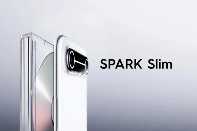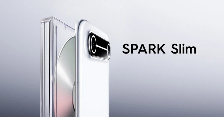 Spark Slim — рекордно тонкий смартфон. Но с оговоркой: рекордно тонкий со скругленным AMOLED-дисплеем. Толщина его корпуса — 5.93 мм, а вес — 154 грамма. Задняя панель выполнена из стекловолокна — это невесомый, но прочный и приятный на ощупь материал. Его активно используют в авиации и автомобилестроении.