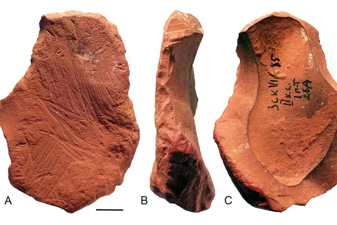 Кроме того, ученые нашли и другие фрагменты охры. Так, один кусок имел отполированные поверхности и явные трещины, которые образовались от сильного нажима. Вероятно, его использовали как штамп или инструмент для нанесения оттисков. А другой фрагмент был покрыт микроскопическими следами шлифовки. Возможно, его раз за разом водили по какой-то поверхности, чтобы получить красящий порошок.