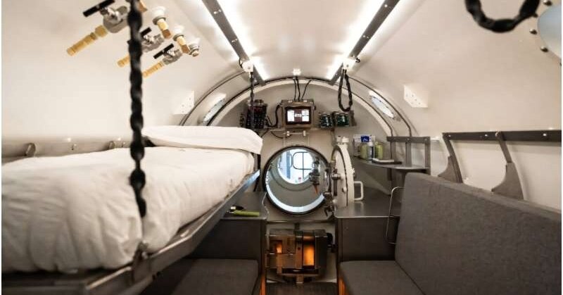 - Основной отсек длиной 12 метров и шириной 3,7 метра герметично защищён от давления воды и оборудован спальными местами, рабочими станциями и зоной приема пищи.