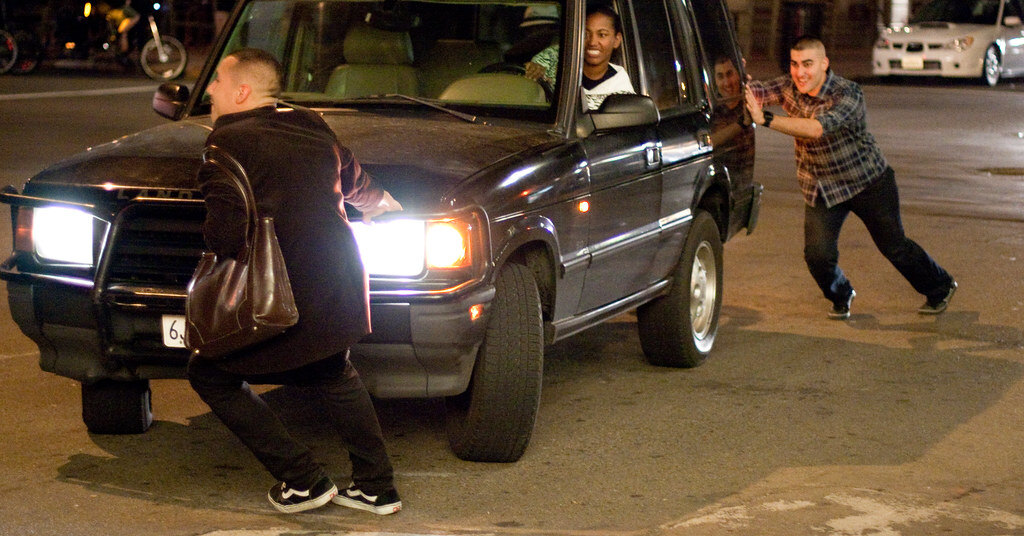 Допустим, эвакуатор недоступен, либо ждать его слишком долго, и надо быстро убрать автомобиль с опасного участка дороги.