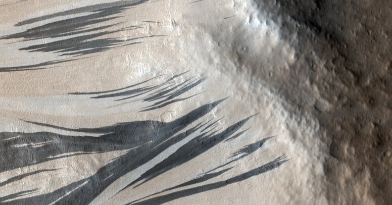 Темные полосы на склонах марсианских гор и холмов озадачивали ученых с 1970-х годов. Сначала их считали следами оползней от тающего льда, затем — результатом падения метеоритов и марсотрясений.