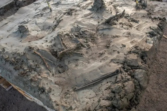 На дне бывшего водоема археологи нашли деревянные сваи, остатки причала, плетеные конструкции из ивы и рыболовную корзину. Все указывало на активную жизнь у воды – пока исследователи не наткнулись на нечто неожиданное.