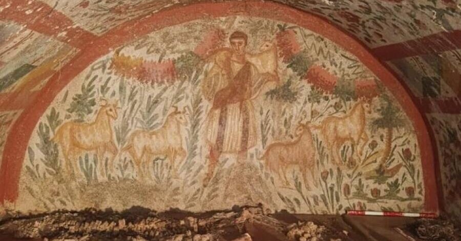 Древнюю фреску нашли в некрополе Хисардере в районе города Изник, Турция, известного в античности как Никея. По оценкам исследователей, сама гробница датируется III веком н. э., когда христианство еще не было легализовано в Римской империи и исповедовалось скрытно.