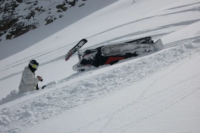 Тяжелая атлетика в сугробе: что делать, если снегоход опрокинулся