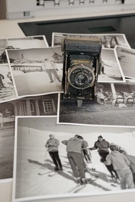 - в результате проявились кадры, которым около 70 лет: семейные сцены, лыжники в горах, зимние виды.