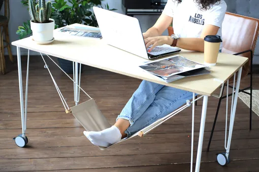 Оборудуйте под столом не гамак, а подстольный велотренажер, посоветовал он: «Если у человека нет возможности двигаться и он весь день вынужден сидеть за столом, не вставая, это будет лучшим вариантом. Тренажер поможет поддерживать кровообращение в нижних конечностях, снизит риски гиподинамии и проблем с сосудами».