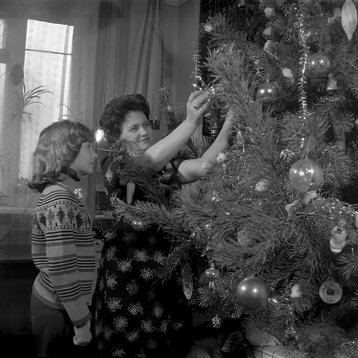 Дождик и мишура по всей квартире, бумажные снежинки на елке, вата на столах, которая играла роль снега... Да, советские люди проявляли креатив и не скупились на украшения. Ну и конечно, в каждом доме на Новый год должна была стоять елка - красавица со стеклянными игрушками, звездой на верхушке, подарками у основания и прочими тематическими атрибутами.