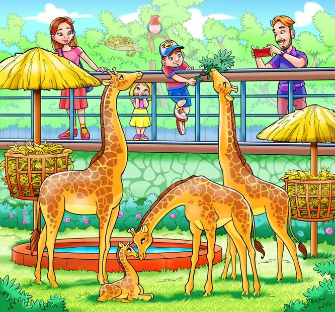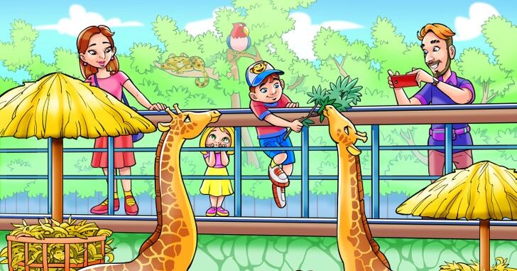 Итак, все что вам нужно — посмотреть на картинку и отыскать обезьянку среди этой шумихи в зоопарке. Где же она?