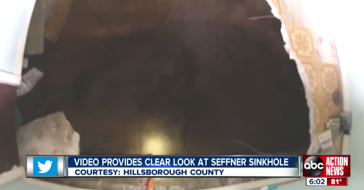 37-летний Джефф Буш спал, когда под его домом в Сеффнере, штат Флорида, открылась воронка. По данным The Guardian, отверстие – около 6 метров в поперечнике и глубиной примерно столько же – открылось под его спальней. Это услышал его брат Джереми со своей партнершей Ханной из другой комнаты.