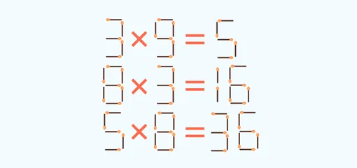 Переставьте спички так, чтобы получить правильное математическое равенство в каждом примере. В одной линии можно двигать лишь по одной спичке.