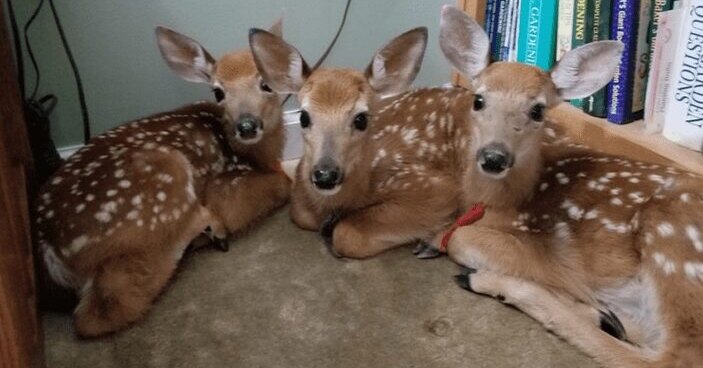 Три олененка спрятались в доме женщины во время шторма. Такого она не ожидала!