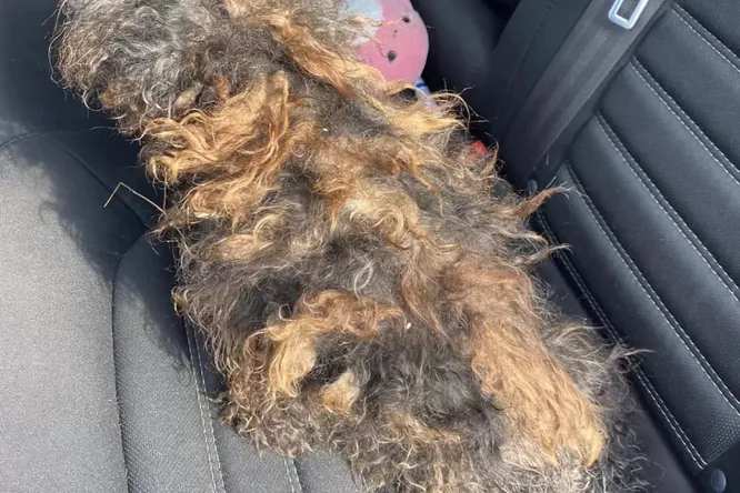 Комок шерсти, неподвижно лежавший на дороге, на самом деле был собакой! Бедное животное было в таком плохом состоянии, что совсем не походило на пса. В этот момент женщина посигналила, чтобы понять, живо ли животное, но собака никак не отреагировала. Тогда она вышла, проверила дворнягу и, поняв, что та жива, подобрала ее.