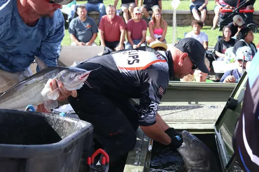 Второе место и вознаграждение в 8 000 долларов (757 000 рублей по курсу на 12 сентября 2023 года) досталось команде, которая поймала трех рыб общим весом 82 килограмма.