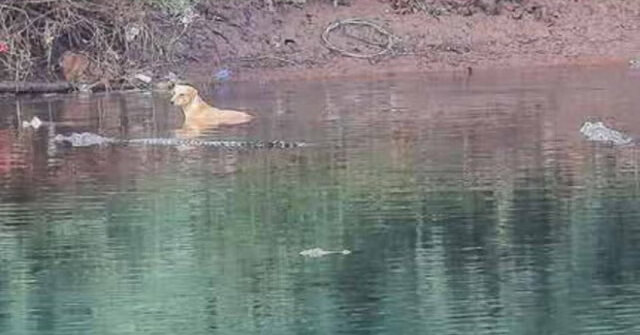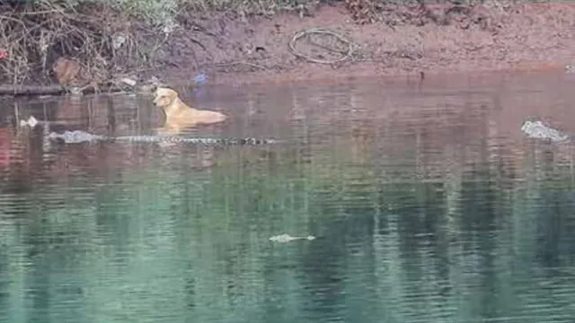 За бездомной собакой неслась стая других диких псов, поэтому она решила прыгнуть в реку Савитри в Индии. Увы, но в воде было совсем не безопасно! Река была полна крокодилов, трое из которых оказались рядом с псом.