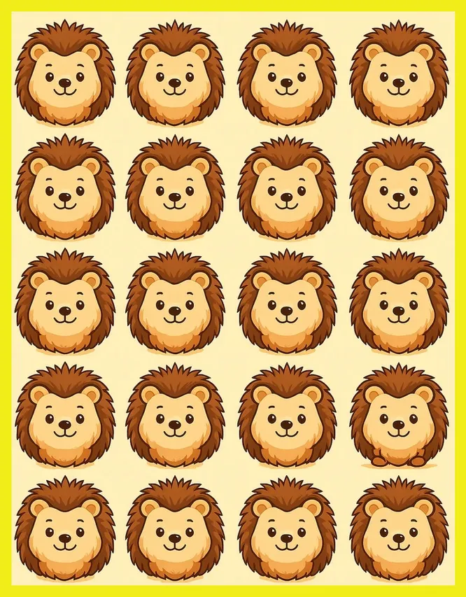 Перед вами картинка с двадцатью милыми ежиками, выстроенными рядами. На первый взгляд они абсолютно одинаковые, но один из них отличается. Включайте таймер на 6 секунд и попробуйте найти уникального ежа!
