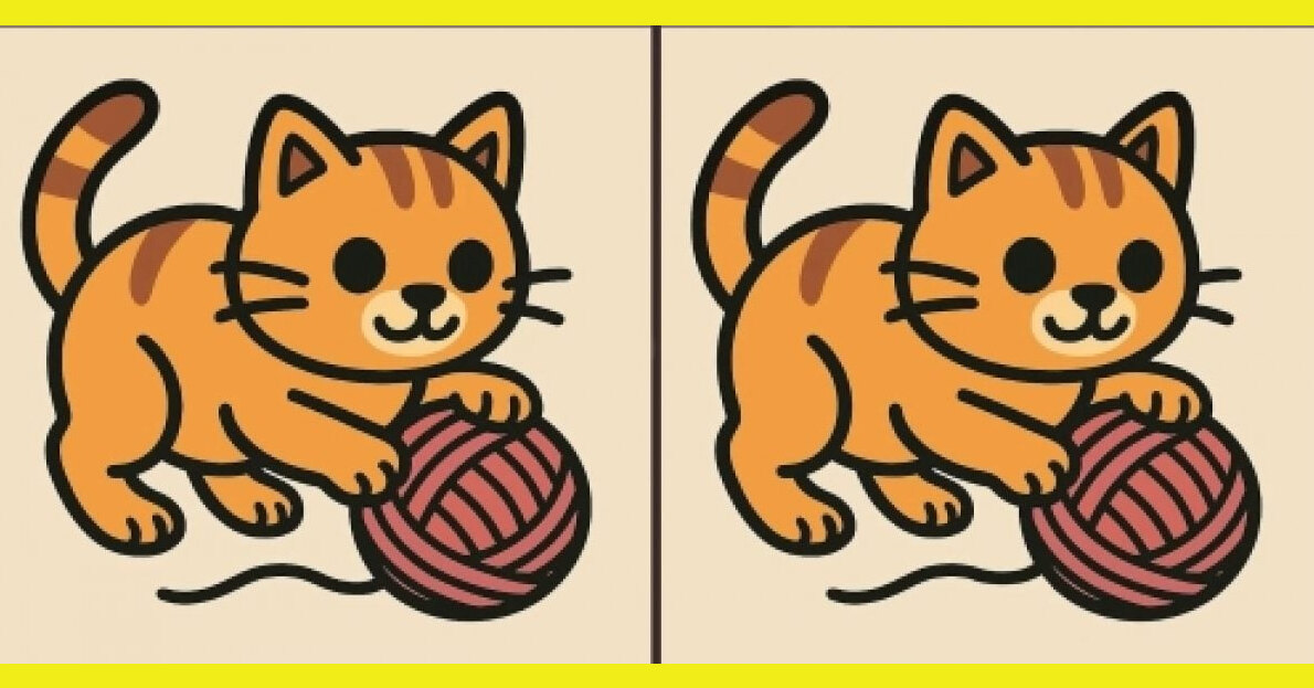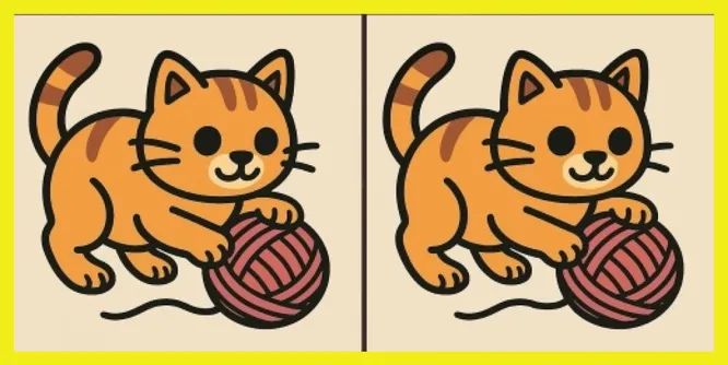 Котенок, играющий с клубком: сможете найти отличия между изображениями?