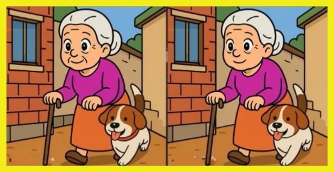 Перед вами почти одинаковые картинки со старушкой и ее верным четвероногим спутником – но есть подвох! Три хитрых отличия прячутся на виду, и у вас всего 17 секунд, чтобы их найти.