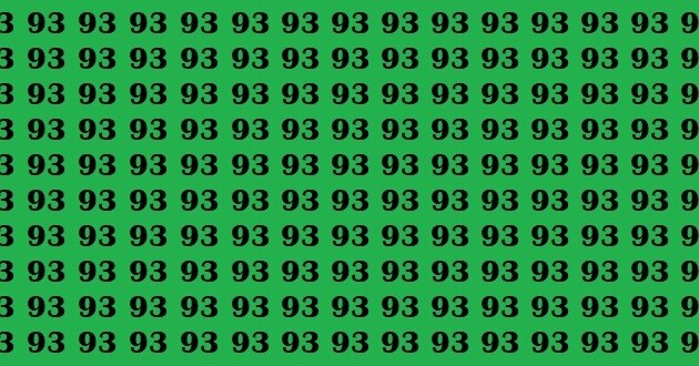 Перед вами изображение на зеленом фоне, усыпанное одинаковыми числами 93. Но одно число здесь выбивается из общего ряда – 98. Засеките время, настройтесь на поиск и попробуйте найти его за 6 секунд.