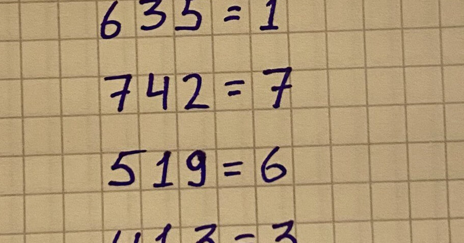 На тетрадном листе аккуратно выведены ряды чисел – все выглядит привычно, пока вы не заметите, что результаты не сходятся с обычной математикой. Чтобы найти правильный ответ, нужно понять скрытое правило, по которому построены уравнения, и догадаться, какое число должно стоять на месте вопроса в последней строке.