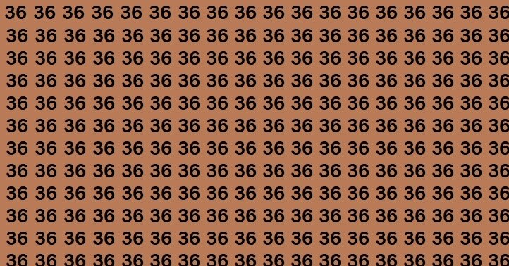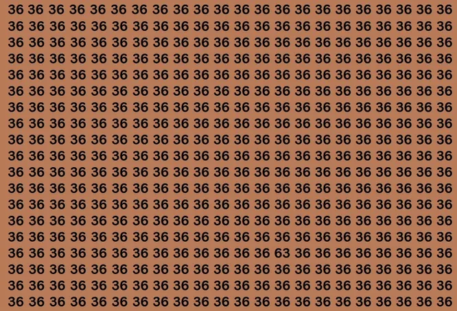 На коричневом фоне изображены десятки одинаковых чисел 36. Но среди них притаилось одно непослушное 63. Засеките 8 секунд и попробуйте найти его как можно быстрее – время пошло!