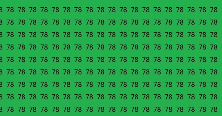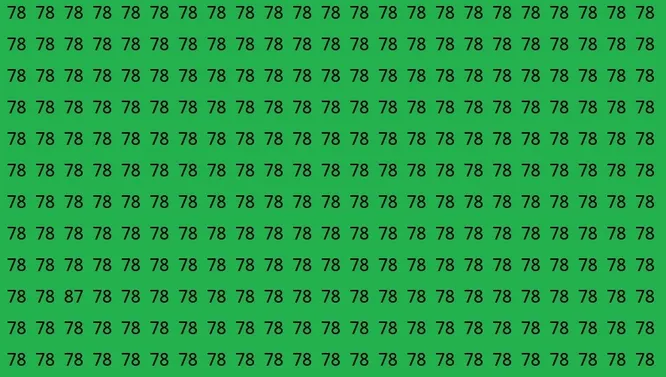 На картинке изображены десятки одинаковых чисел 78, равномерно разбросанных по зеленому фону. Но одно число выбивается из ряда – 87. Включайте таймер на 5 секунд и начинайте поиск!