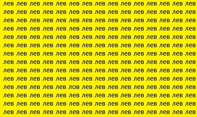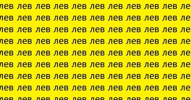 Сегодня вас ждет короткое, но коварное испытание. На желтом фоне ровными рядами написано слово «лев». Однако среди них затерялось одно-единственное лишнее слово. Ваша задача – найти его всего за 11 секунд.