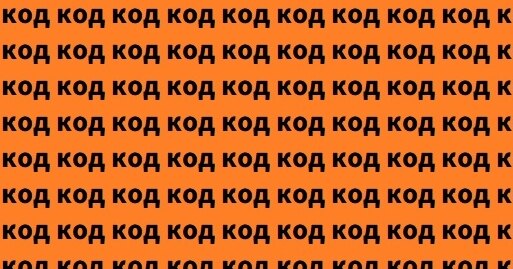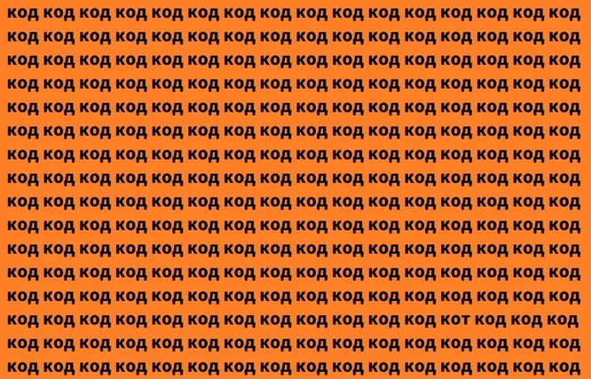 Перед вами оранжевый фон, на котором ровными рядами написано слово «код» черными буквами. Все выглядит одинаково, но среди этих строк притаился один-единственный «кот». Засеките 8 секунд и начните поиск.