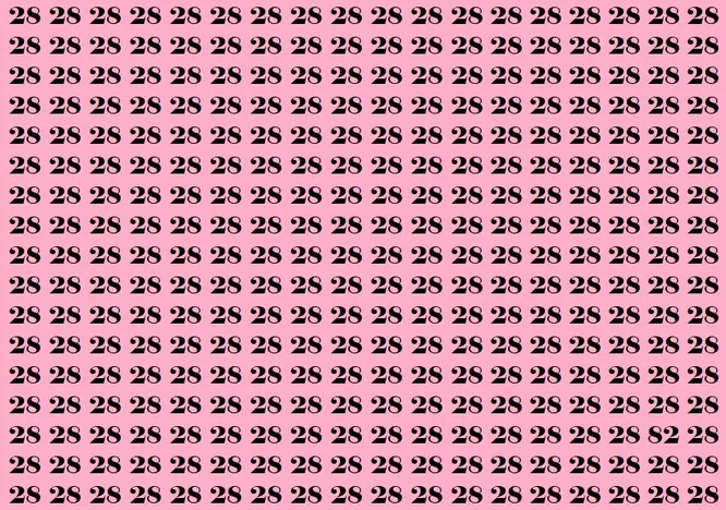 Перед вами яркое розовое поле, усыпанное одинаковыми числами 28. Но одно число нарушает этот порядок – где-то среди них затаилось 82. Засеките 9 секунд, сосредоточьтесь и начните поиск!