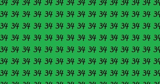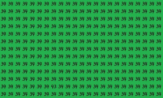 На картинке – зеленый фон, усеянный множеством одинаковых чисел 34. Но где-то среди них спряталось одно-единственное число 43. Засеките 7 секунд – и попробуйте отыскать его как можно быстрее!